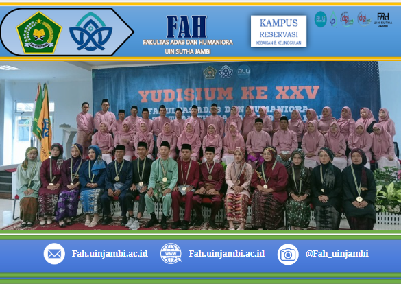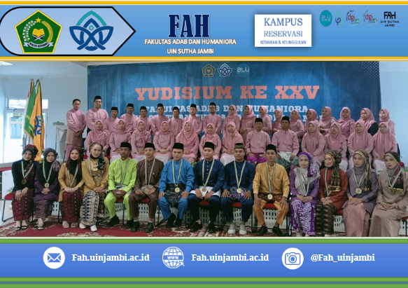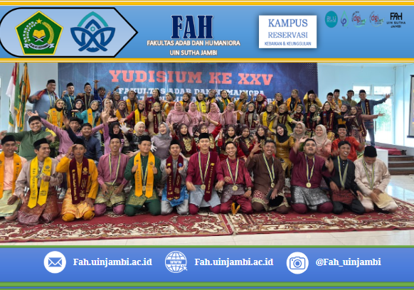 Fakultas Adab dan Humaniora (FAH) UIN Sulthan Thaha Saifuddin Jambi sukses menggelar acara yudisium ke XXV Tahun 2025 dengan tema “Menjunjung Kearifan Lokal, Membangun Masa Depan Global”