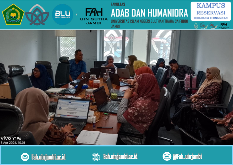 Jambi-Berita Online, Rabu, 08 April 2026. Bertempat di ruang rapat lantai 2 gedung Dekanat Fakultas Adab dan Humaniora UIN Sulthan Thaha Saifuddin Jambi, Pimpinan Fakultas Adab dan Humaniora mengadakan Rapat Rutin Kegiatan 2026. Rapat ini dihadiri oleh Dekan, Wakil Dekan, Kaprodi, Sekprodi Fakultas Adab dan Humaniora. Dalam rapat ini, dipimpin langsung oleh Dekan Fakultas Adab dan Humaniora, Dr. Dian Mursyidah, M.Ag yang membahas tentang persiapan kegiatan-kegiatan tahun 2026. Rapat ini juga membahas tentang evaluasi kegiatan sebelumnya, dan hal-hal yang lain termasuk penerimaan mahasiswa baru tahun akademik 2025/2026 serta persiapan Yudisium Fakultas Adab dan Humaniora dan Wisuda UIN Sulthan Thaha Saifuddin Jambi. Dekan menegaskan kepada kaprodi dan sekprodi untuk mempersiapkan semua kegiatan yang akan datang lebih rinci dan terlaksana sesuai dengan skedul yang telah ditetapkan.